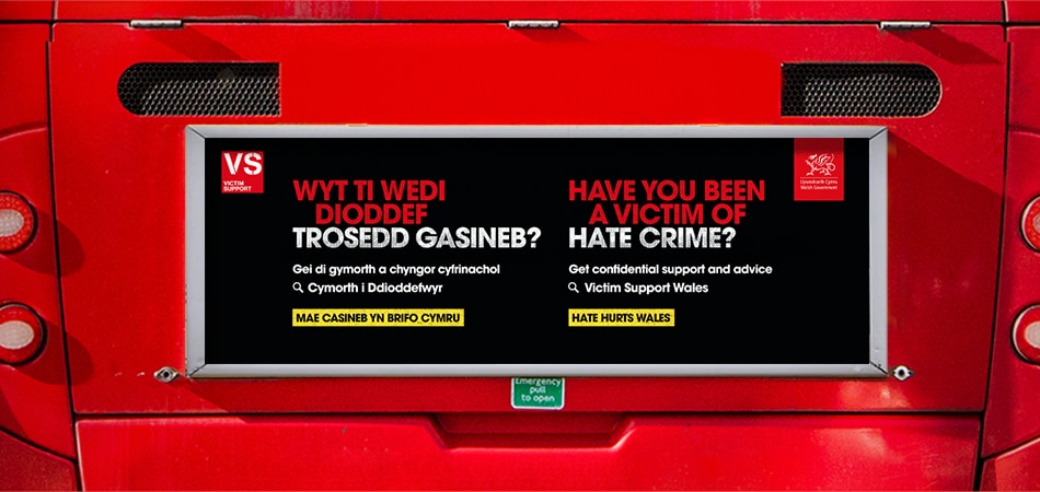 Our Hate Hurts Wales campaign is also live across Wales, promoting Victim Support Wales’ independent, free and confidential support and advice to those dealing with hate crime. With the primary aim of empowering victims to come forward and access the support available to them, the call to action also helps people understand more about what a hate crime is and the importance of reporting it. The campaign ran across multiple targeted OOH formats and a pan-Wales radio campaign, supported by digital on Facebook, Instagram, Google Search, Display and YouTube.