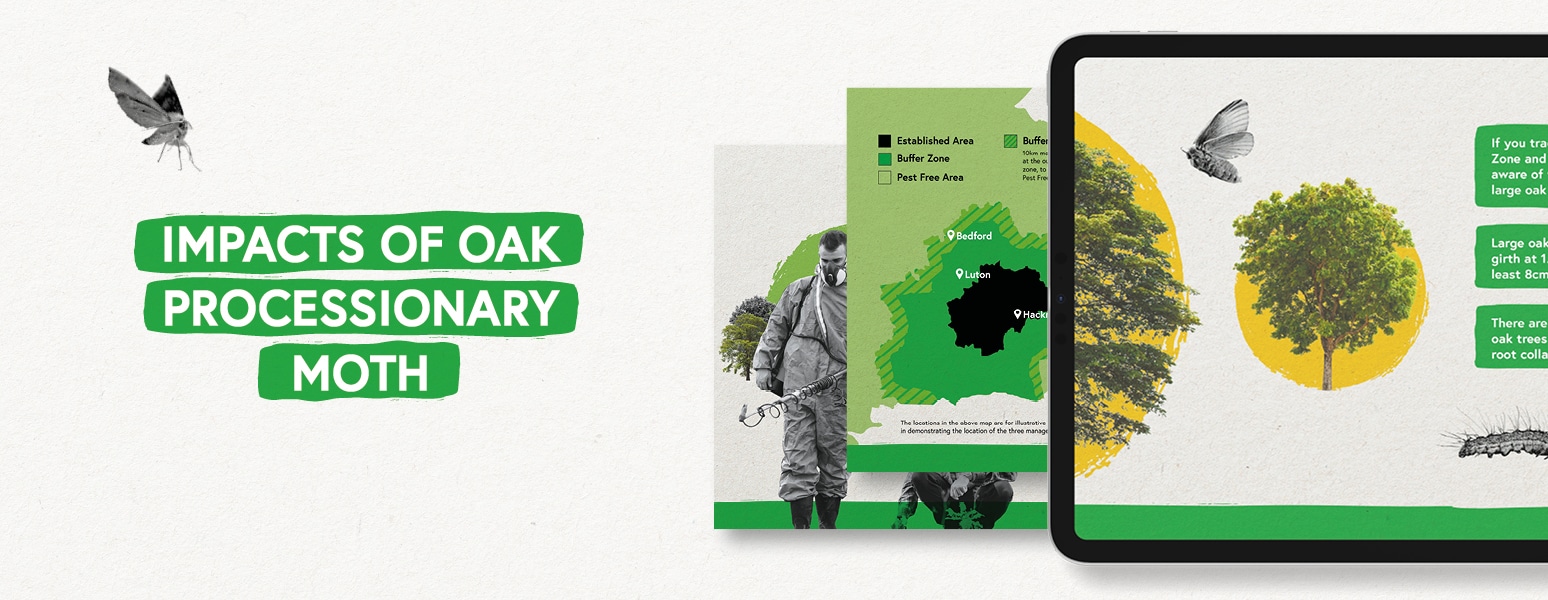 This campaign was to target the Oak Processionary Moth (OPM), impacting the health of humans and animals who live near affected woodlands. Our aim was to raise public, partners and stakeholders’ awareness and highlight the threat of OPM as well as the protective measures being taken by DEFRA. We developed a guide and video to support traders of large oak trees to meet the management policy changes that came into force in May 2023.